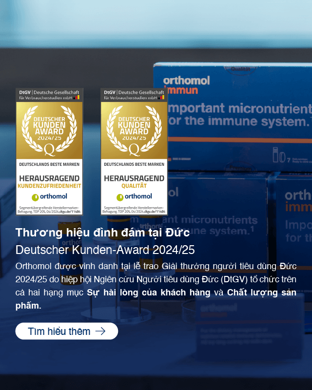 Với hơn 30 năm kinh nghiệm trong lĩnh vực dinh dưỡng y học, Orthomol không chỉ mang đến những sản phẩm được nghiên cứu chuyên sâu, mà còn đặc biệt chú trọng đến tư vấn cá nhân hóa. Chúng tôi tin rằng, mỗi khách hàng đều cần được hiểu rõ về thành phần, công dụng và chọn đúng giải pháp phù hợp với nhu cầu sức khỏe riêng biệt của mình.