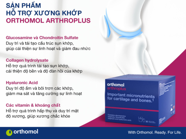 Orthomol Arthroplus là sản phẩm hỗ trợ sức khỏe xương khớp đến từ thương hiệu Orthomol – uy tín lâu năm trong lĩnh vực dinh dưỡng cao cấp tại Đức. Sản phẩm nổi bật với công thức toàn diện, kết hợp glucosamine sulfate, chondroitin, collagen cùng vitamin và khoáng chất thiết yếu, giúp tái tạo sụn, giảm viêm và cải thiện sự linh hoạt của khớp. Orthomol ArthroPlus đặc biệt phù hợp với người bị thoái hóa khớp, viêm khớp hoặc có nguy cơ cao, mang lại hỗ trợ vận động hiệu quả và duy trì chất lượng cuộc sống hàng ngày.