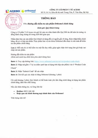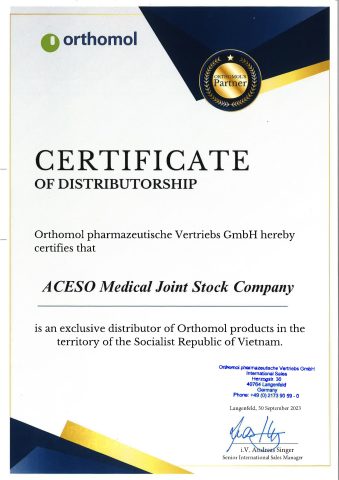 Tại Việt Nam, Orthomol được nhập khẩu và phân phối chính hãng thông qua Công ty Cổ phần Y tế ACESO. Tất cả sản phẩm Orthomol chính hãng đều: