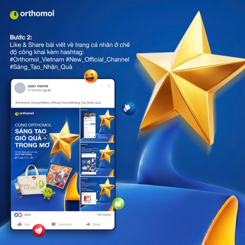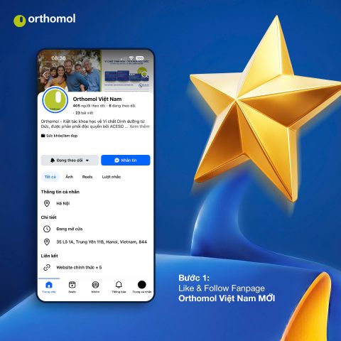 Bước 1: Like & follow fanpage Orthomol Việt Nam mới: https://www.facebook.com/orthomol.vn.official