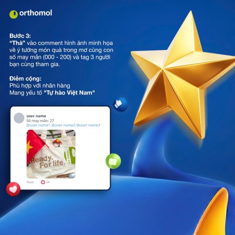 - 05 người chơi bình luận số may mắn trùng với kết quả quay số may mắn trong livestream trên fanpage Orthomol Việt Nam.