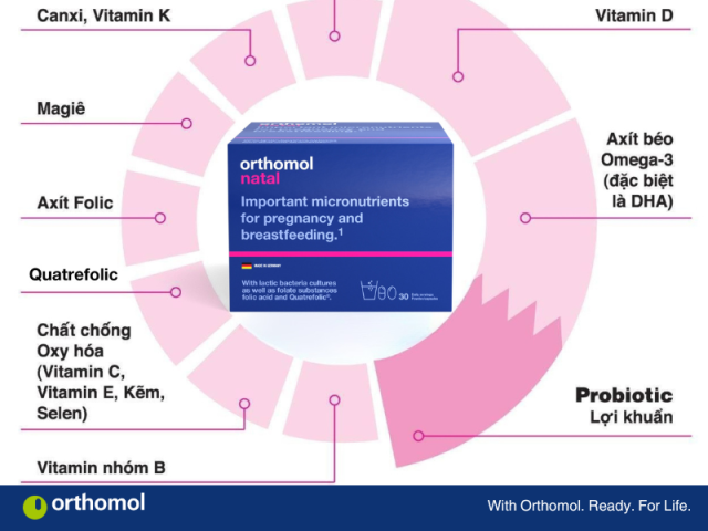 Với mẹ bầu, Orthomol Natal là lựa chọn vượt trội bởi ngoài việc cung cấp đầy đủ vi chất thiết yếu cho thai kỳ, sản phẩm còn bổ sung thêm Probiotic với hàm lượng lên tới 3 tỷ lợi khuẩn – điểm nổi bật của Orthomol Natal so với các sản phẩm khác trên thị trường. Nhờ đó, mẹ chỉ cần dùng Orthomol Natal là đã có trọn bộ dưỡng chất và lợi khuẩn cần thiết, không cần bổ sung riêng lẻ. Orthomol Natal giúp mẹ khỏe mạnh, bé phát triển toàn diện để hành trình làm mẹ trọn vẹn hơn.